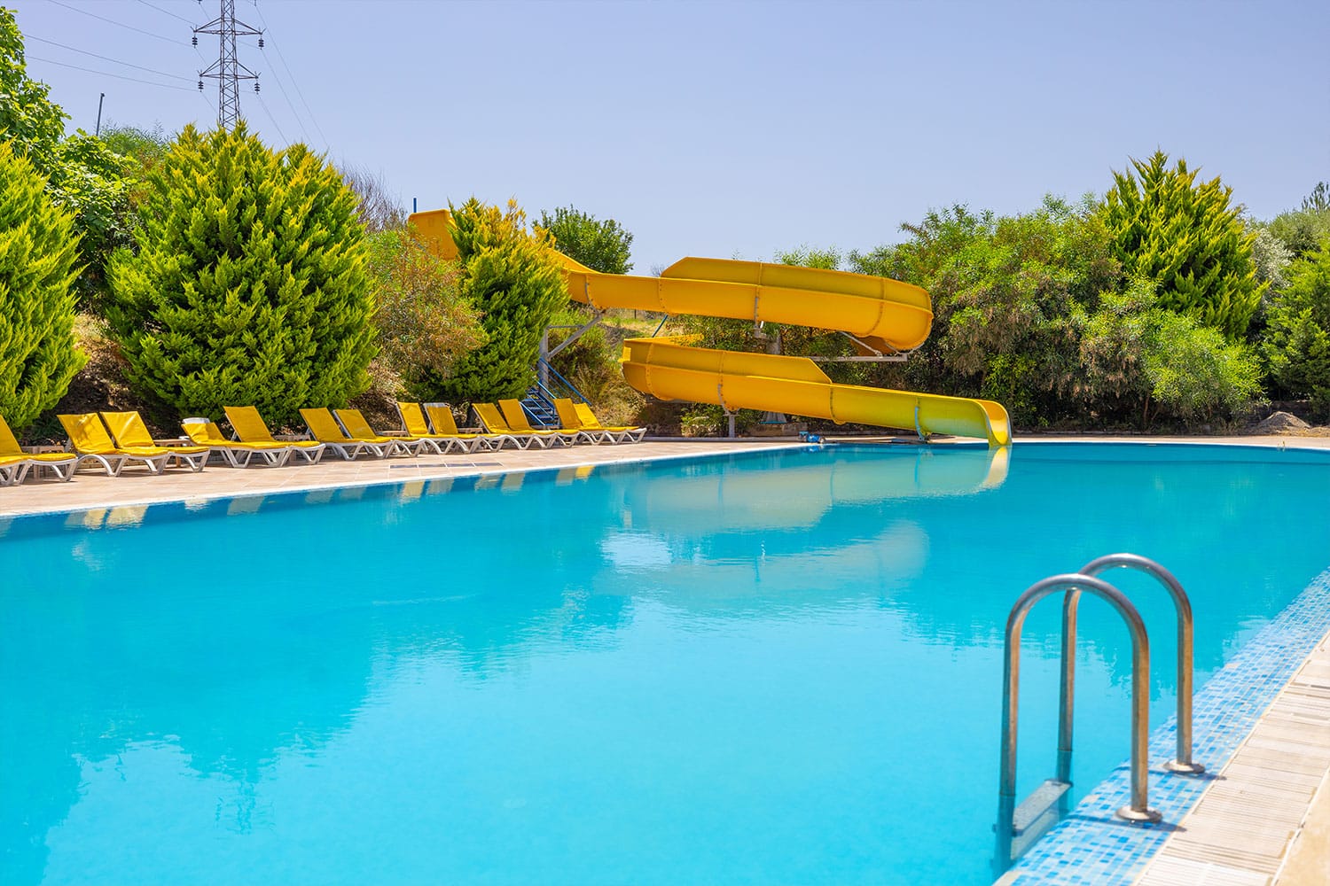 Our facility features two large swimming pools—one of which is Olympic-sized—each with its own water park, as well as safe children’s pools for our youngest guests. You can enjoy complimentary umbrellas and lounge chairs in our spacious sunbathing areas and enjoy the water and fun all day long.